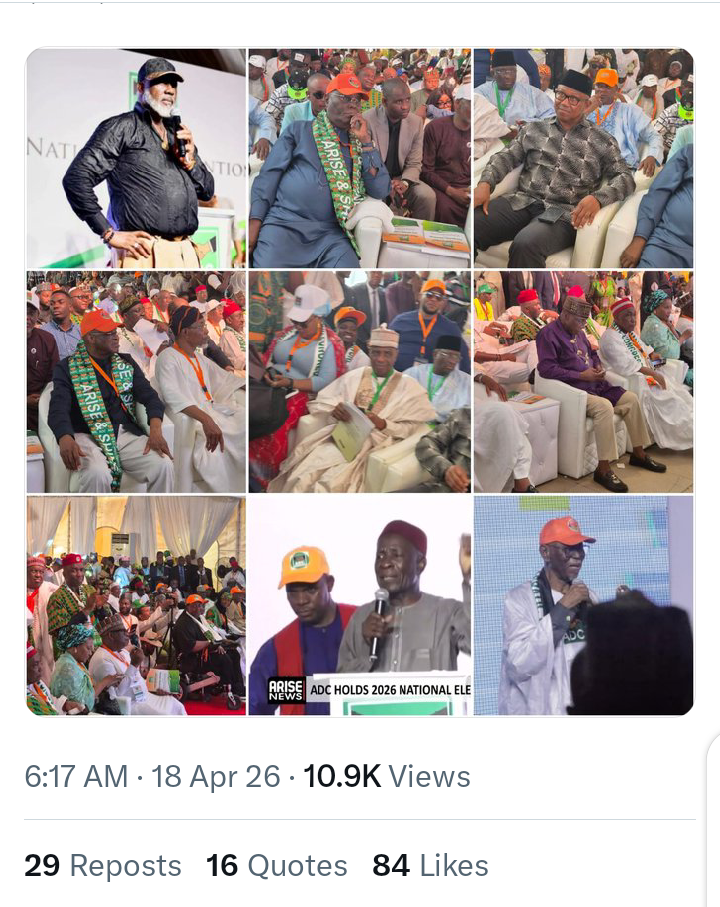 This is coming after the African Democratic Congress, ADC held its convention at the Rainbow Event Centre in Abuja.